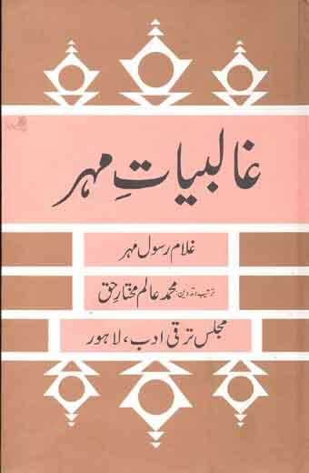 غالبیاتِ مہر، ممتاز ادیب، مترجم، محقق اور نقاد غلام رسول مہر کی جگر کاوی کا شاہکار ہے۔ جیسا کہ کتاب کے نام سے ظاہر ہے، یہ کتاب میرزا اسد اللہ خاں غالب کے مطالعے پر مبنی ہے۔ مہرؔ نے اس کتاب میں غالب کے دیوان نسخۂ حمیدیہ کی طباعت اور تحقیق کی داستان سے آغاز کیا ہے اور احوال و آثار غالب کی گم شدہ کڑیوں کی تلاش کے ساتھ ساتھ غالب کی نثر اور دیگر تصانیف کا بھی ماہرانہ اور محققانہ جائزہ لیا ہے۔ کتاب کے مواد کو تین حصوں میں تقسیم کیا گیا ہے۔ پہلا حصہ حیات و تصانیفِ غالب، دوسرا غالب کے فکر و فن کا احاطہ کرتا ہے اور تیسرے حصے میں متفرقات دیے گئے ہیں۔ یہ کتاب اس اعتبار سے بھی اہمیت کی حامل ہے کہ اس میں غالب کے نظم و نثر کے مجموعوں کے ساتھ ساتھ غالب کے فارسی کلام کا بھی محاکمہ کیا گیا ہے۔ نیز غالب کے کلام کی خصوصیات کے تحت غالب کے کلام کو تنقید کی کسوٹی پر پرکھا گیا ہے۔اس کتاب کی تدوین و ترتیب محمد عالم مختار حق نے کی۔ مرحوم اس فن میں مہارت رکھتے تھے۔ افسوس کہ موت نے انھیں اس تالیف پر مقدمہ لکھنے کی مہلت نہ دی۔ لیکن کتاب کی ترتیب و تدوین کا فریضہ اُنھوں نے خوب نبھایا۔ غالب شناسی کے سلسلے میں اس کتاب کا مطالعہ نہایت مفید ہو سکتا ہے۔