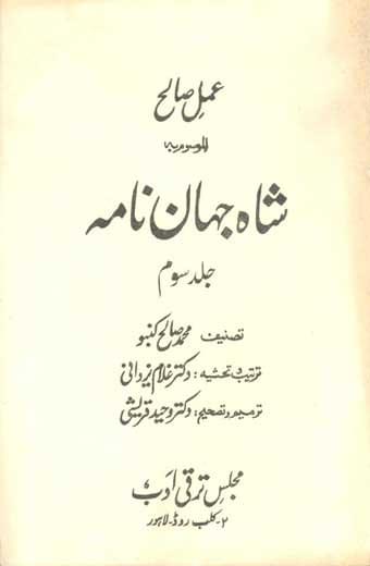 شاہ جہاں نامہ جیسا کہ نام سے ظاہر ہے، مغل شہنشاہ جہانگیر کے فرزند اور اورنگ زیب عالمگیر کے والد شاہجہاں کے عہد کی عکاس ہے۔ یہ محمد صالح کنبو کی تصنیف ہے اور فارسی زبان میں ہے۔ اس کی ترتیب و تحشیہ ڈاکٹر غلام یزدانی نے کی ہے۔ مقدمہ ڈاکٹر وحید قریشی نے تحریر کیا ہے۔ ڈاکٹر صاحب نے مقدمے میں ڈاکٹر غلام یزدانی کے احوال و آثار کا تذکرہ کیا ہے اور عملِ صالح الموسوم بہ ’’شاہجہاں نامہ‘‘ کے متن کی صحت کے بارے میں ڈاکٹر یزدانی کی قابلیت و کاوش کا ذکر کیا ہے۔ ڈاکٹر غلام یزدانی (جن کا تذکرہ فرحت اللہ بیگ نے مولوی نذیر احمد کی کہانی میں دانی کے نام سے کیا ہے) کا اجنتا اور ایلورا کے غاروں پر تحقیقی کام لائقِ تحسین ہے۔ انہیں کتبہ شناسی اور خط شناسی میں کمال حاصل تھا۔ مرتب نے عمل صالح الموسوم بہ شاہجہاں نامہ کے مختلف نسخوں اور مخطوطوں کا حوالہ دیا ہے جن کے تقابل سے موجودہ مسودئہ کتاب کی تیاری کا ذکر کیا ہے۔ کتاب کے مقدمے سے پتہ چلتا ہے کہ مجلس مخطوطات کی تشکیل میں ان کا کردار نہاہت اہم تھا۔ برعظیم کی مسلم تاریخ کے مختلف ادوار پر ان کی گہری نظر تھی۔ مقدمے میں ان کی دوسری تحقیقی کاوشوں پر بھی روشنی ڈالی گئی ہے۔ اس کے علاوہ ڈاکٹر وحید قریشی نے مذکورہ اشاعت میں سابقہ نسخوں میں پائی جانے والی اغلاط کی درستی کی تفصیل بھی بیان کی ہے۔ شاہجہاں نامہ تین جلدوں پر مشتمل ہے۔ شاہجہاں نامہ (تین جلدوں میں) کی اشاعت کا اہتمام کئی برس پہلے مجلس ترقی ادب ہی نے کیا تھا۔ اس کی پہلی اور دوسری جلد ختم ہونے کے باعث ان کی نئی اشاعت کا اہتمام کیا گیا۔ کوشش کی گئی ہے کہ سابقہ ایڈیشن میں متن میں موجود اغلاط کی درستی کر دی جائے۔ کتاب کا سرورق مجلس کے کلاسیکی ادب کے لیے مخصوص ڈیزائن کے مطابق ہے۔